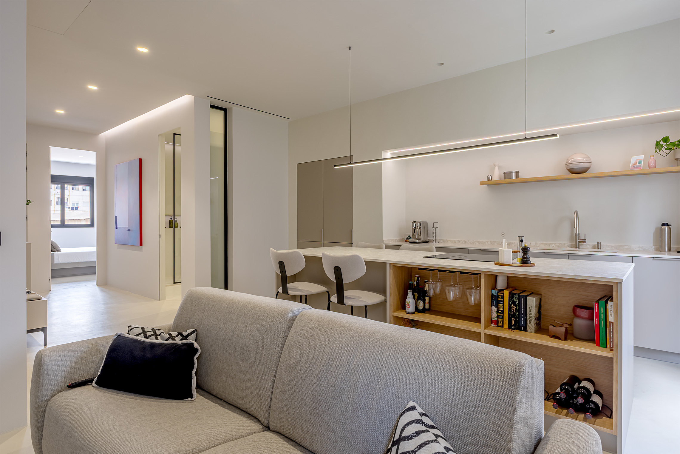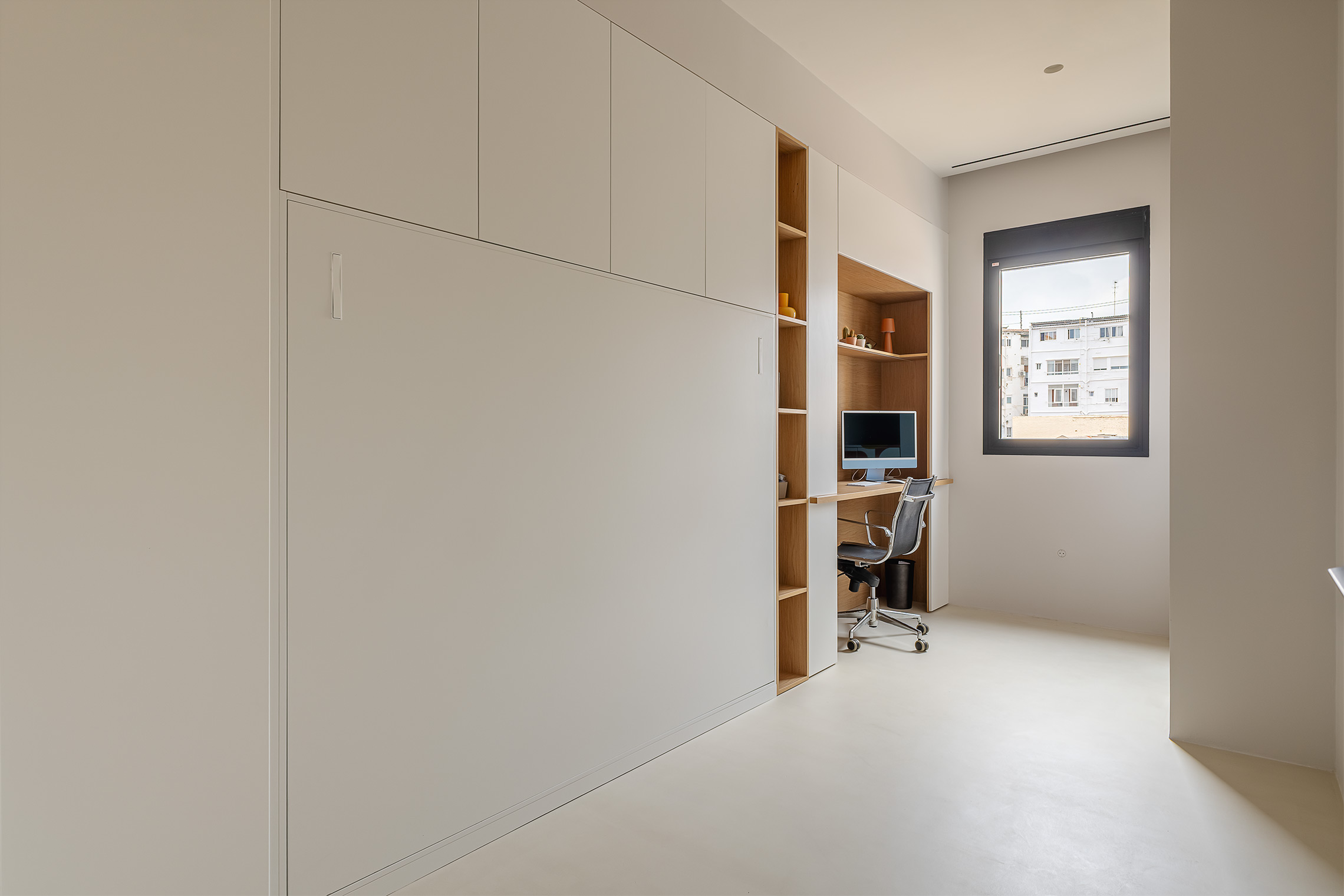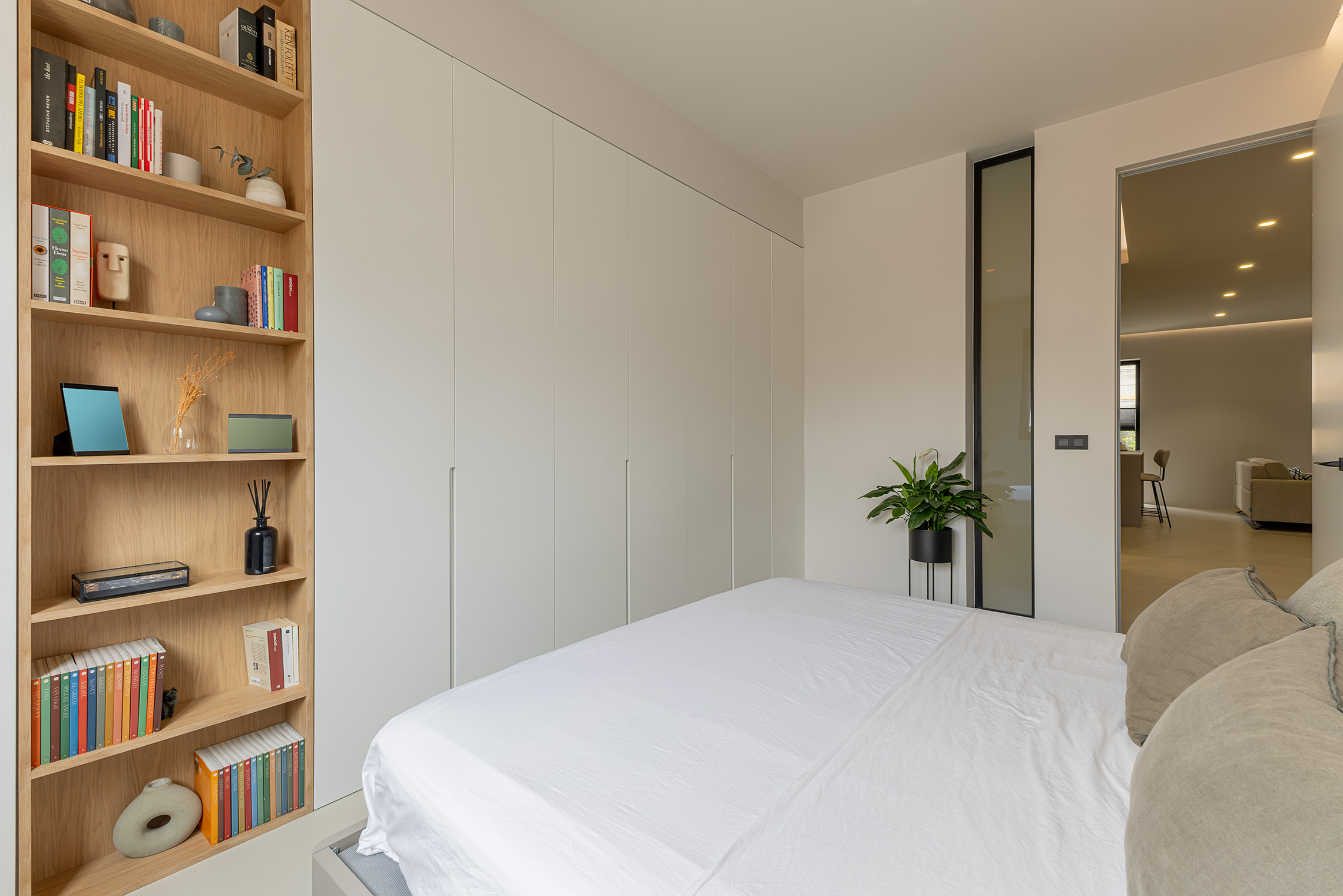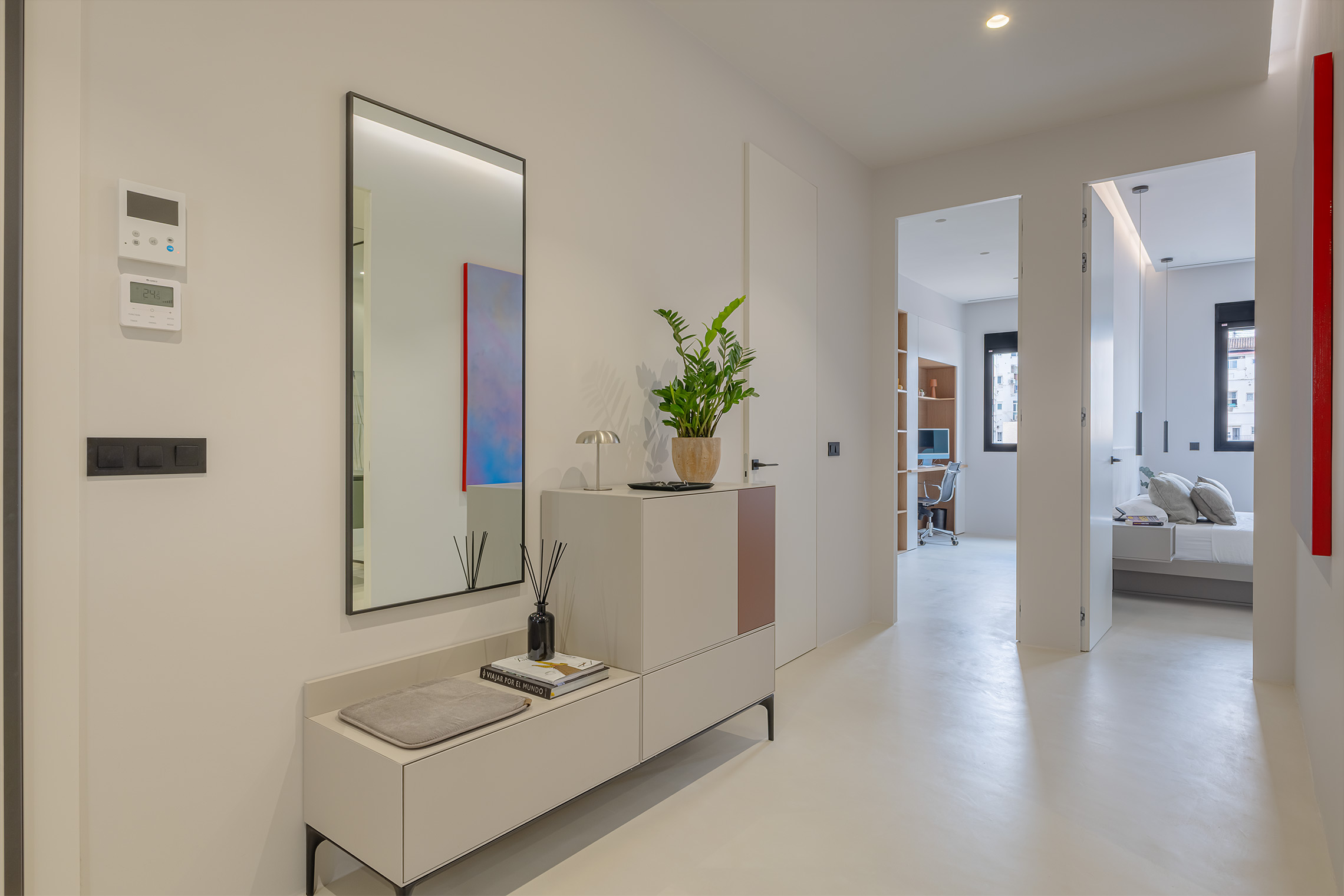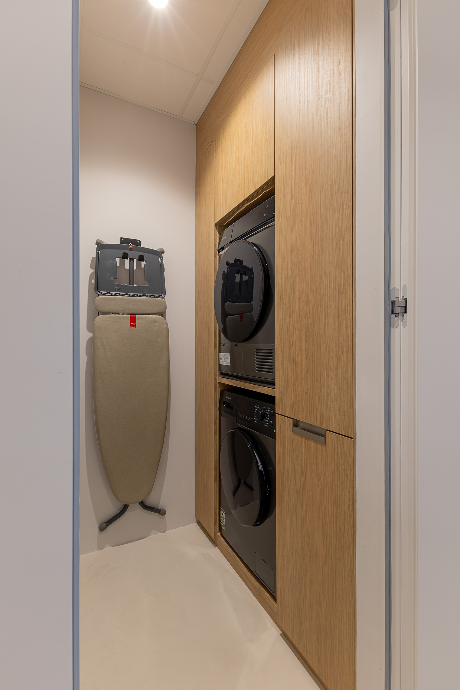 Comfort is gegarandeerd dankzij centrale airconditioning met wifi-bediening, ramen met verborgen kozijnen met thermische onderbreking en akoestische/thermische beglazing, en geluidsabsorberende wandpanelen in de woonkamer en slaapkamer. Daarnaast beschikt de woning over een op maat gemaakte wasruimte met ruimte voor zowel een wasmachine als een droger.