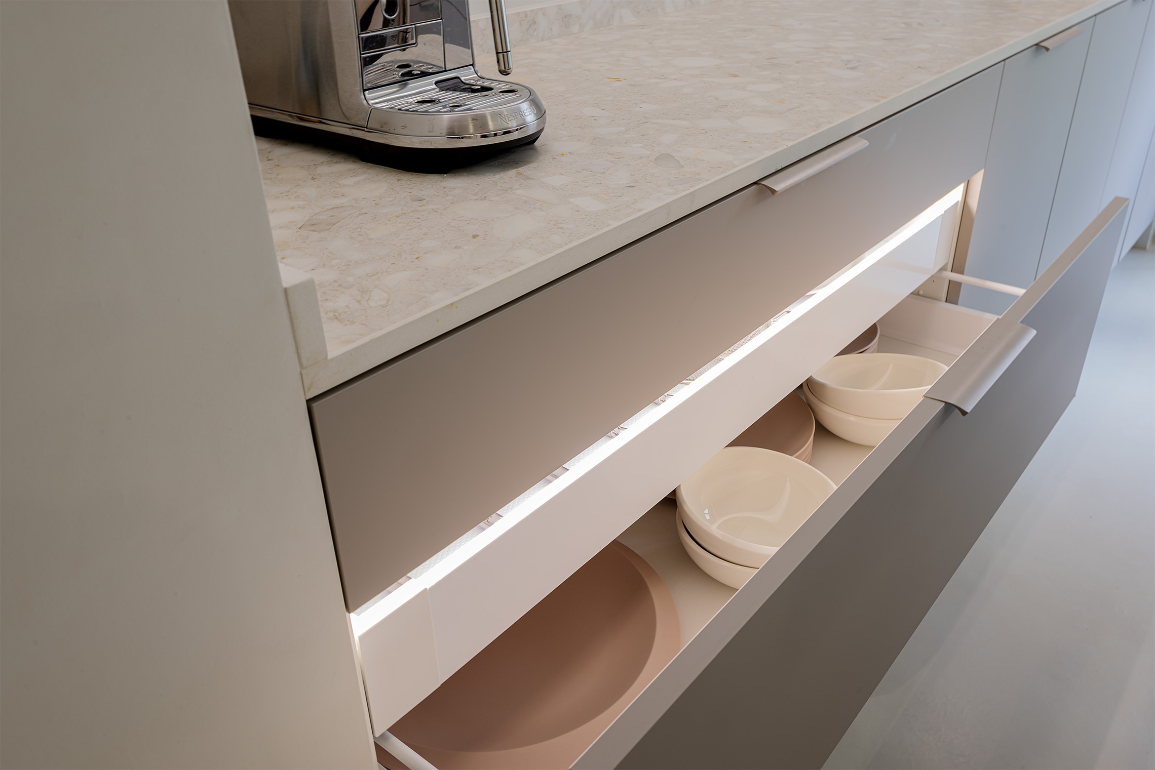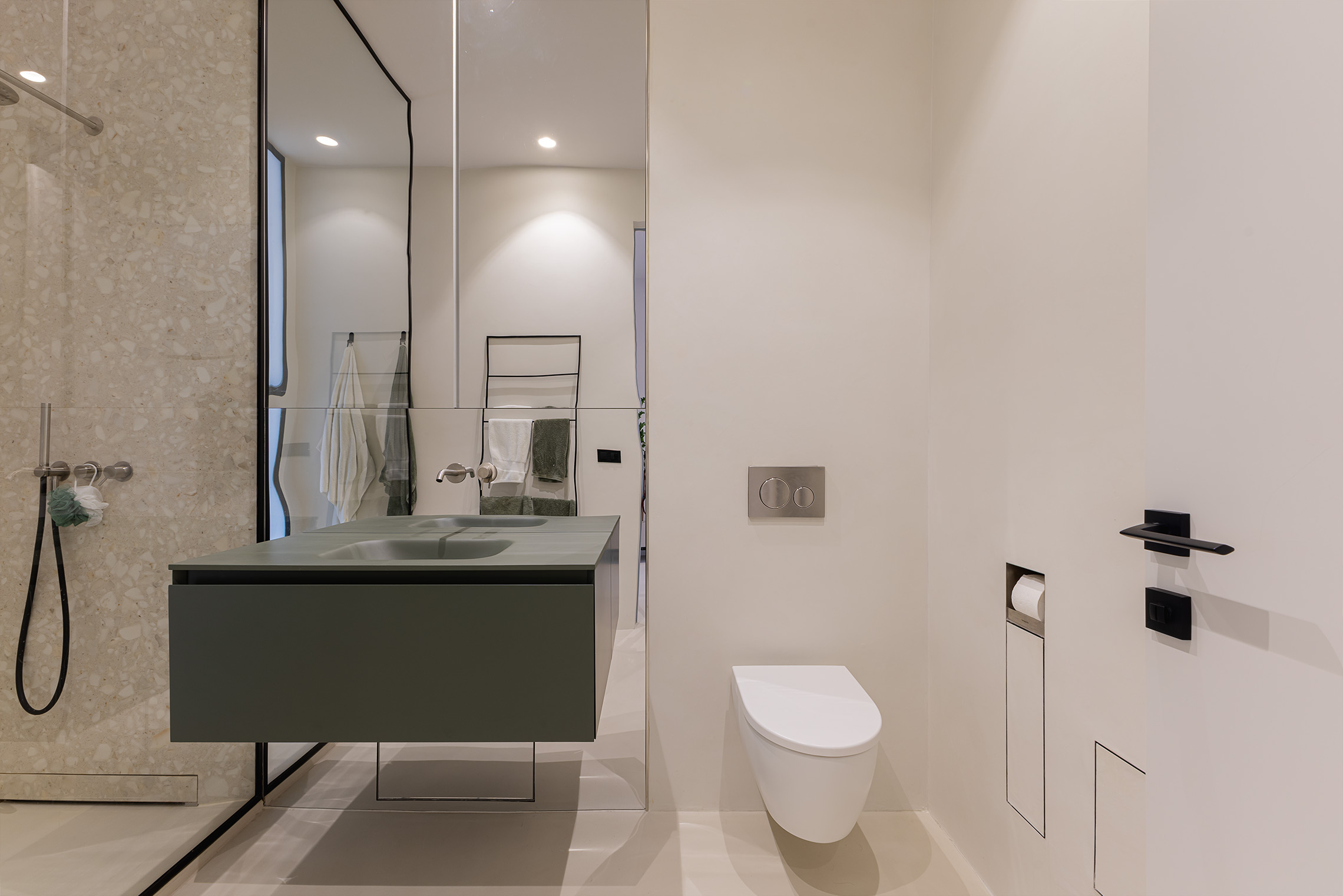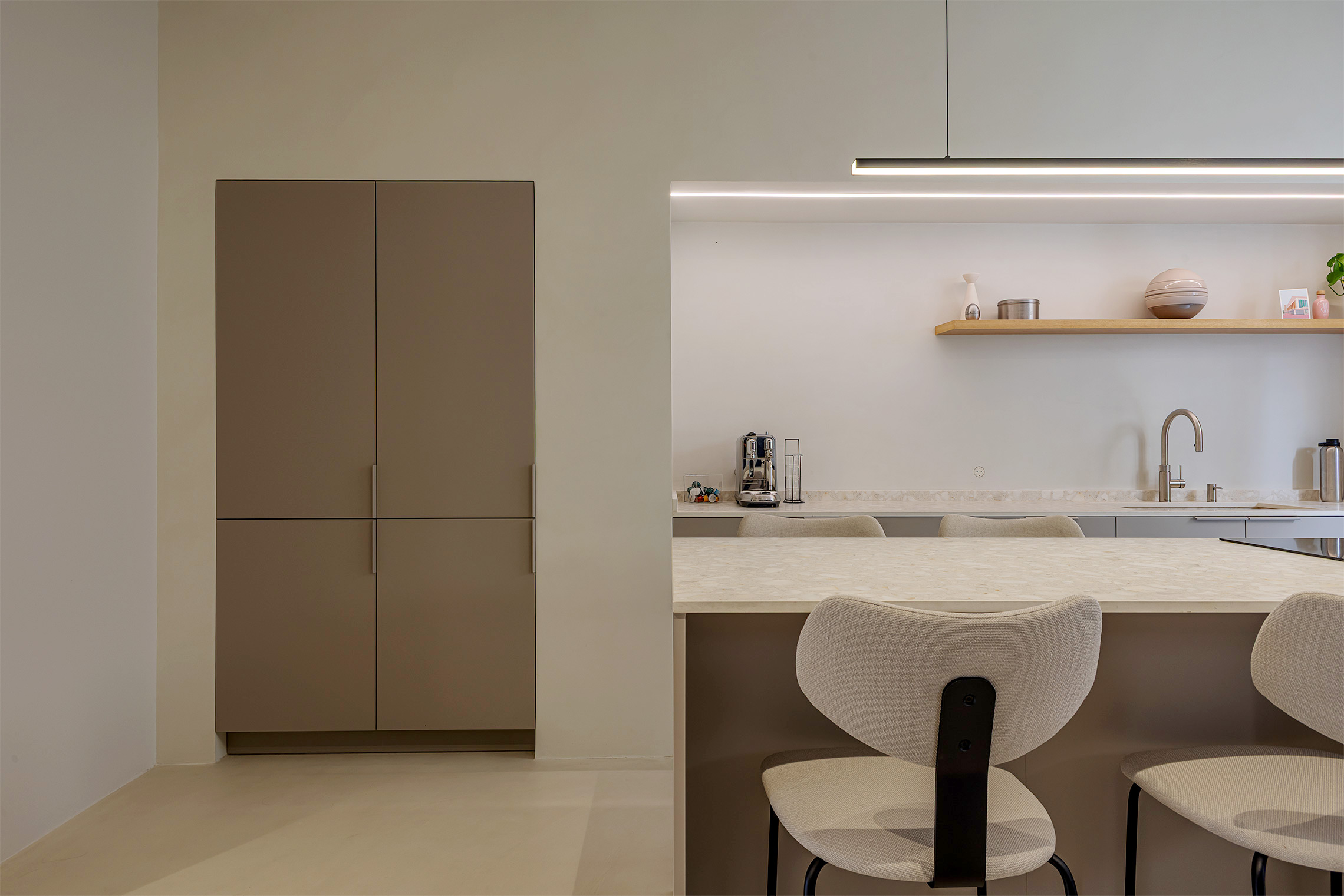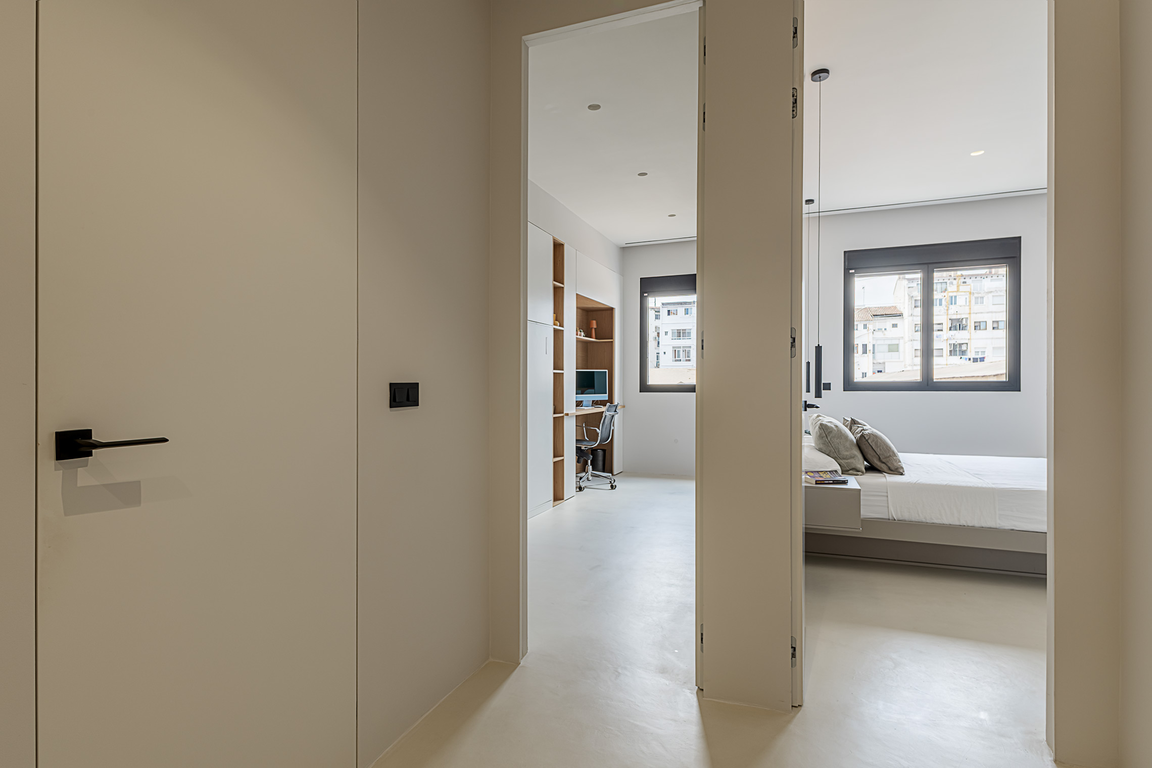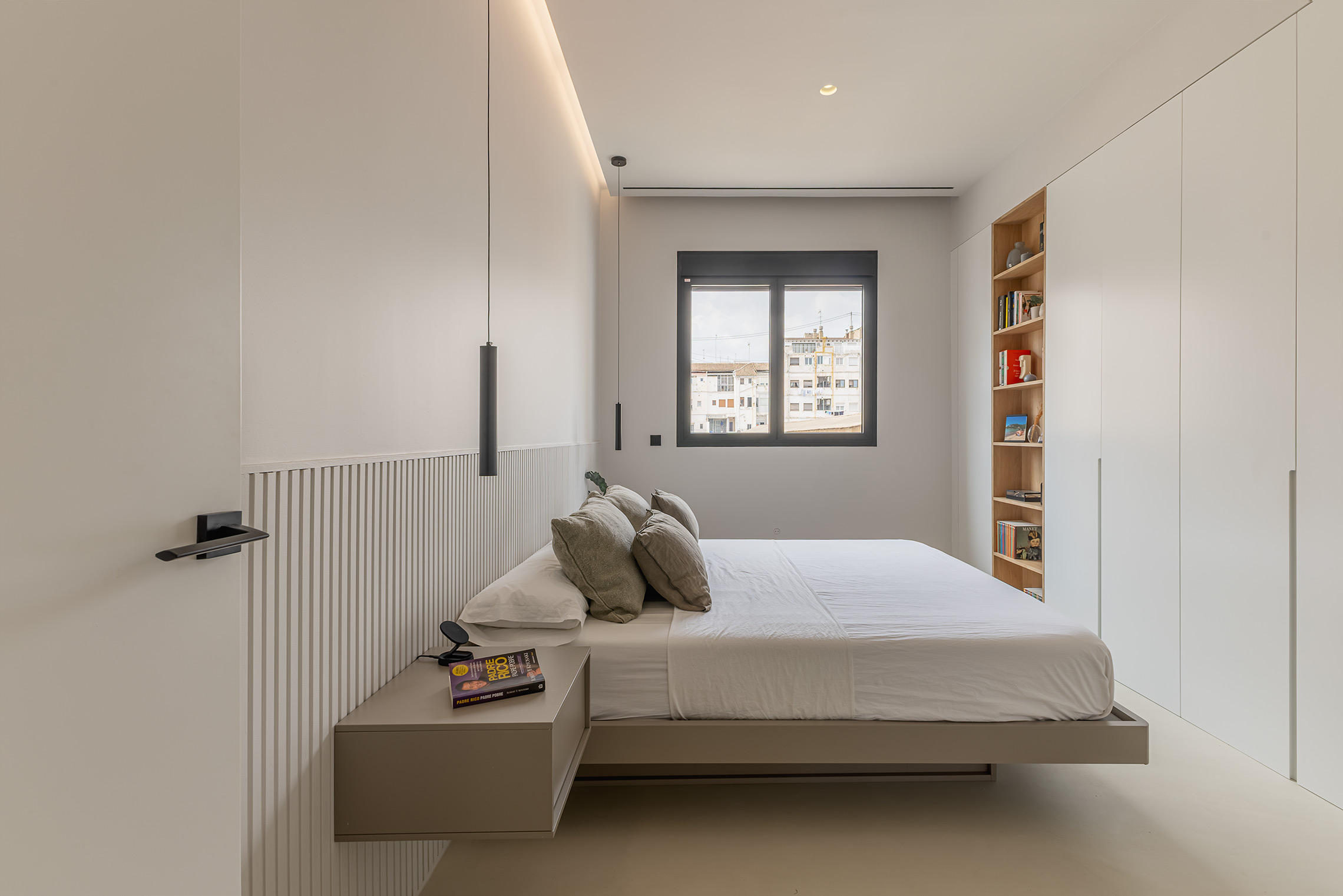 Comfort is gegarandeerd dankzij centrale airconditioning met wifi-bediening, ramen met verborgen kozijnen met thermische onderbreking en akoestische/thermische beglazing, en geluidsabsorberende wandpanelen in de woonkamer en slaapkamer. Daarnaast beschikt de woning over een op maat gemaakte wasruimte met ruimte voor zowel een wasmachine als een droger.