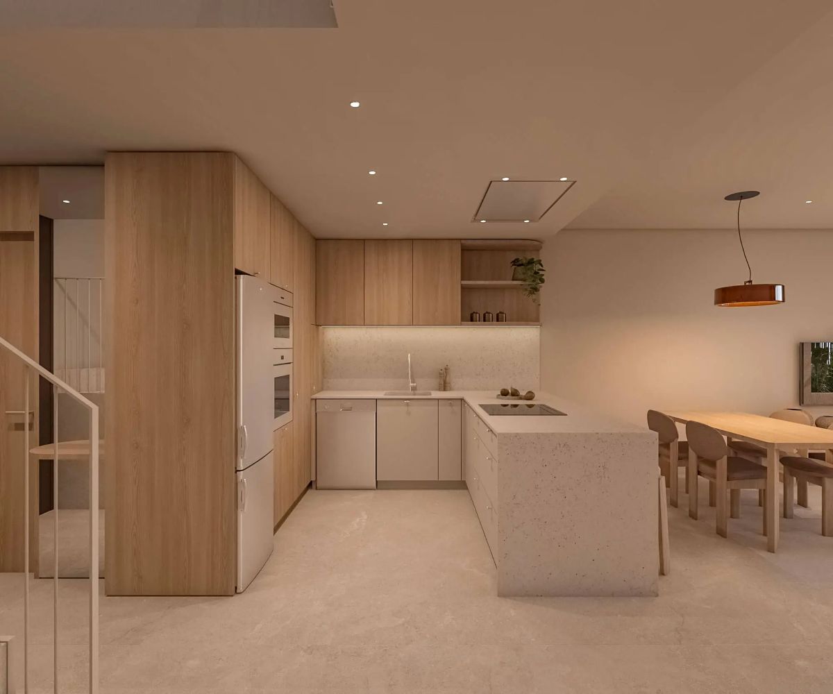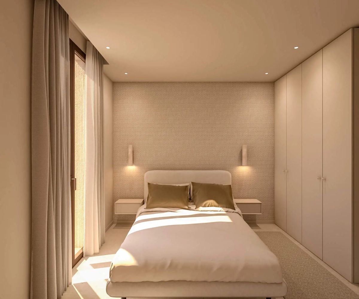 De leefruimtes openen zich naar royale privéterrassen en groene zones, waardoor een naadloze verbinding ontstaat met de gemeenschappelijke tuin en het zwembad. Elke woning combineert een moderne architectuur met functionele indelingen en een optimale oriëntatie, zodat natuurlijk licht gedurende de hele dag maximaal wordt benut.