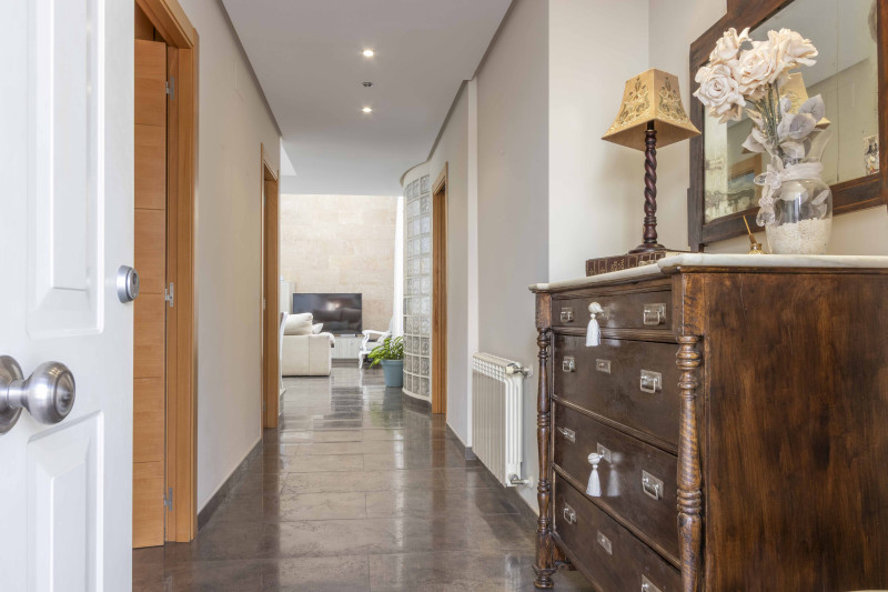 De woning beschikt over centrale verwarming op gas, parketvloeren, een marmeren trap, aluminium ramen en hoogwaardige afwerkingen. Direct te betrekken.