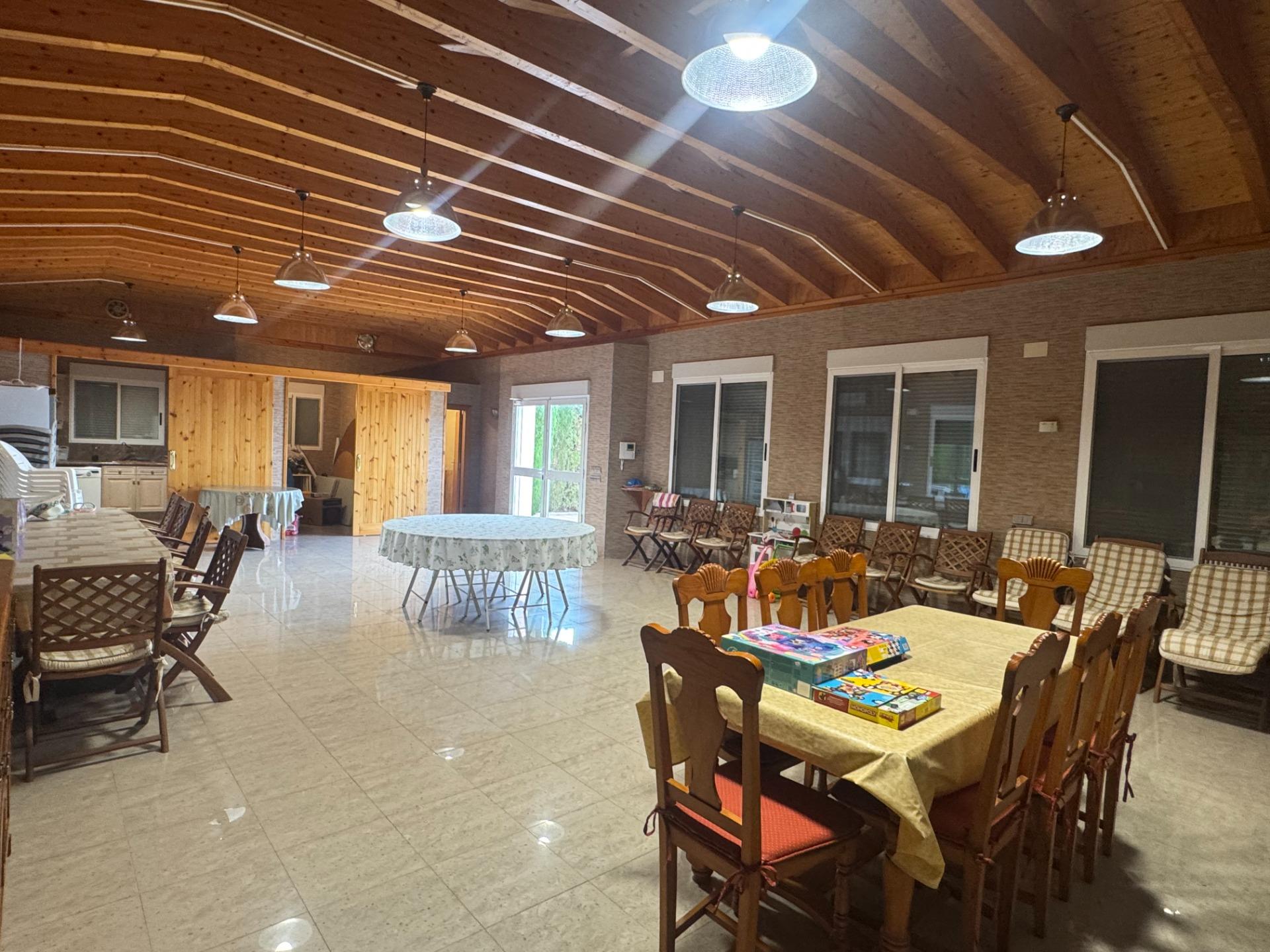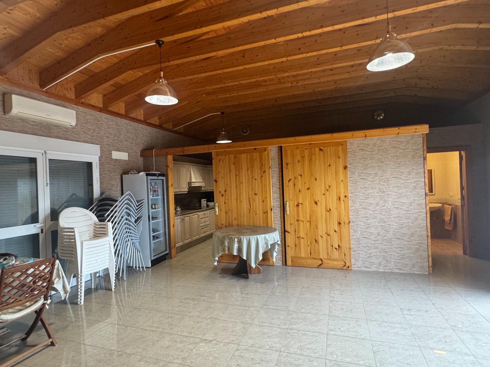 Het object bestaat uit twee hoofdgebouwen: het hoofdhuis van 145 m2 en, apart op hetzelfde perceel, een ander gebouw van 104 m2 dat momenteel in gebruik is als een ruime multifunctionele ruimte die, afhankelijk van de behoeften van het gezin, kan worden gebruikt voor feesten, recreatieve activiteiten, een fitnessruimte of opslag, aangezien het een keuken, badkamer en airconditioning omvat. Daarnaast is er een buitenruimte met een badkamer voor paella en barbecue, een aparte berging en een prachtig zwembad omgeven door open ruimtes, perfect om te ontspannen en te genieten met familie en vrienden. Dit alles verkeert in uitstekende staat en heeft een zeer comfortabele indeling, ontworpen voor maximaal gemak.