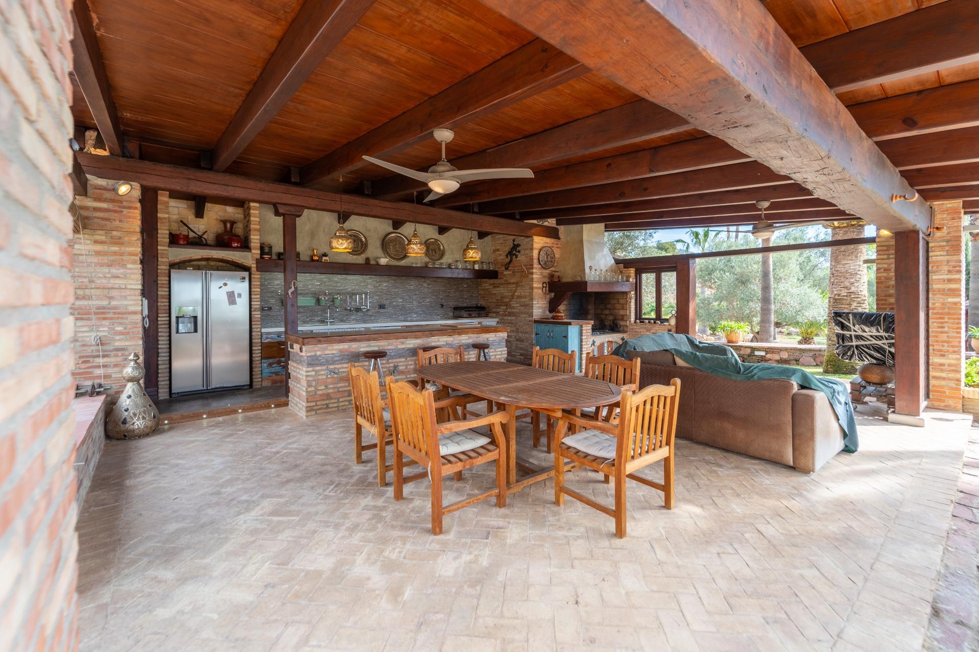 Deze prachtige villa staat op een royaal perceel van 5.603 m², schitterend aangelegd en voorzien van een zwembad van 10 x 5 meter. Direct naast het zwembad bevindt zich een 70 m² grote zomerkeuken met paellaruimte en badkamer — ideaal voor lange dagen en avonden in de buitenlucht. Daarnaast is er een tweede gebouw van 58 m² dat dienstdoet als garage en berging.